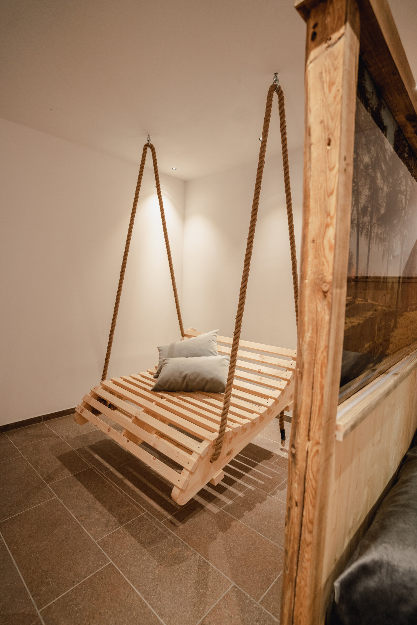 Do you associate sweat with hard work? Well in this case, sweating has never been more pleasurable! We’re talking about the Finnish sauna at our farm. Immediately after a beneficial sauna session, brace yourself for a cold shower and then relax comfortably in the hay beds in the relaxation room. The Moarhof hay, which comes from our meadows, offers intense relaxation: an assuredly enviable aspect of a special wellness holiday.